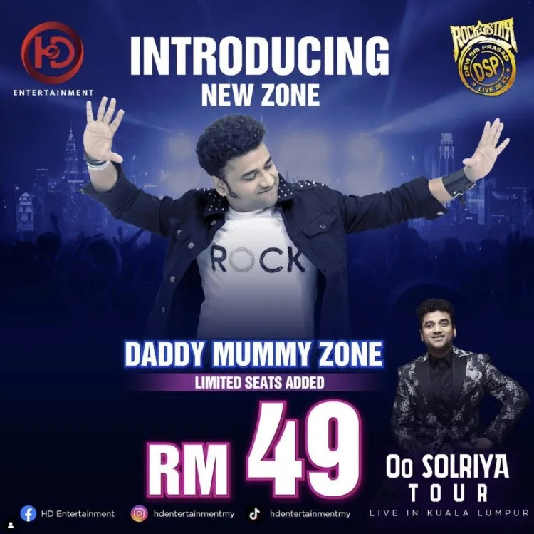 With barely a week to go before Devi Sri Prasad’s Live in KL show on the 27th of May 2023, organizers HD Entertainment has released a new zone aptly named Daddy Mummy zone at an eye watering RM49.