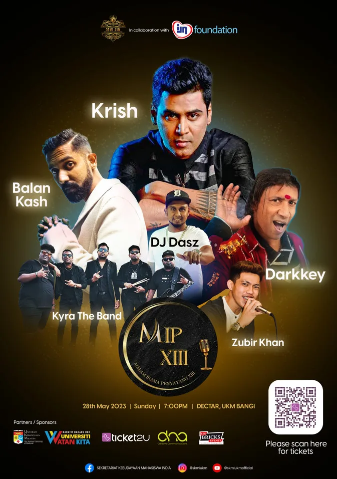 The Malam Irama Penyayang XIII is honoured to present Singer Krish, a well-known Indian recording artist, along with a few of our own homegrown artists, Darkkey , Balan Kash, and Zubir Khan, who are all renowned for their musical skill and alluring stage presence. All attendees to the concert can expect a night filled with songs from each artist’s well-known playlists.