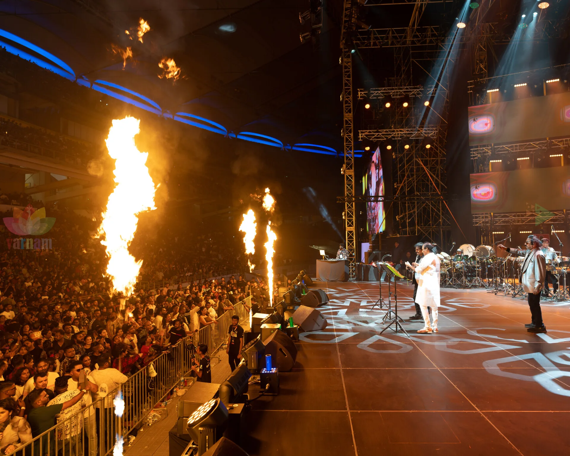 The stadium was packed with thousands of spectators from various states around 6.30 p.m. Revathy Mariappan from Malaysia and Chutti Aravind from India came on stage and introduced themselves as the program’s hosts. Both of them were actively interacting with people. The hosts’ outgoing personalities, spontaneous teasing, and ability to keep things moving geared up the crowd for what was to come.This review constitutes an inside look at what made the night so wild as well as some of the concert’s most memorable moments.