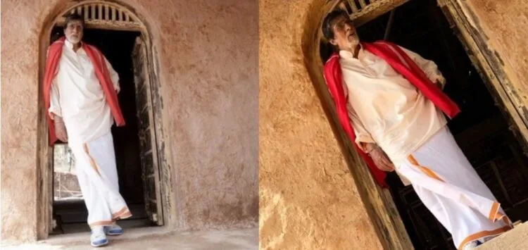 Big B is seen in complete South Indian garb for the film, he dons a veshti and kurta with an angavastram around his head, replete with vibuthi and sandal paste on his forehead.