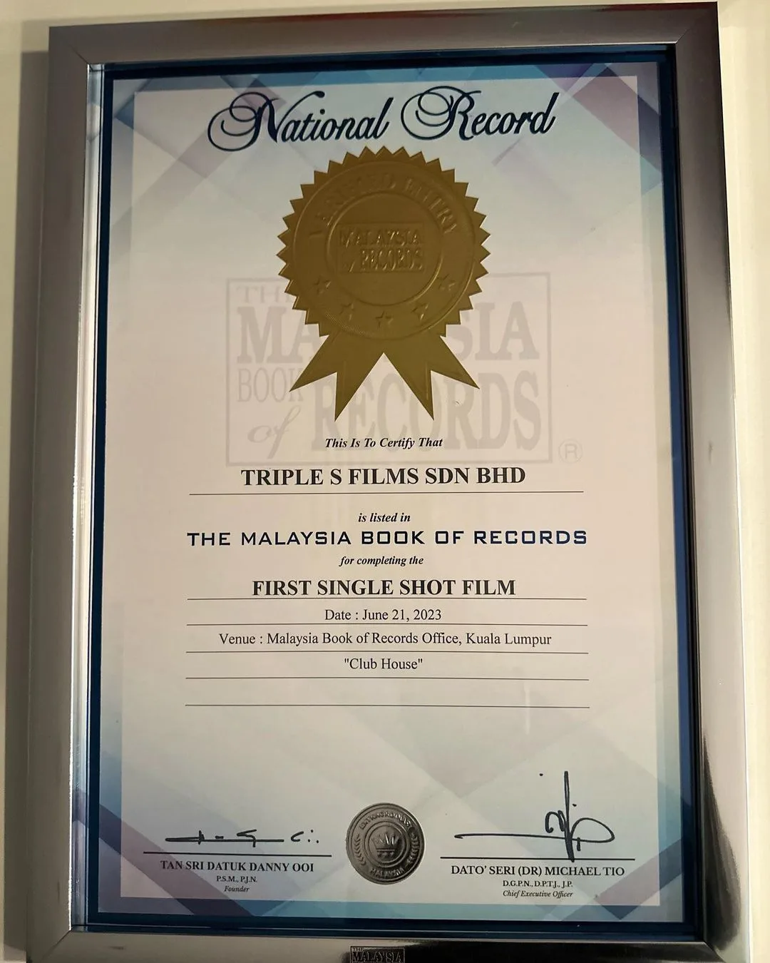 “The achievement never ends; our goal is to create more success”, so says the crew of Club House, a locally made film that is featured in the Malaysia Book of Records. The entire film crew, including the actors, was given 12 days of training. After that, 118 minutes of non-stop filming were recorded in a single day. Recognising its achievement, representatives from the Malaysia Book of Records presented Triple S Films with this award on 21 June 2023.