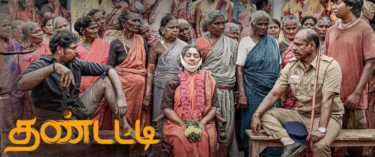 Thandatti, a Tamil rural drama film directed by Ram Sangaiah, starring Pasupathy, Rohini, Vivek Prasanna, and Ammu Abhirami. In the film, an ageing police inspector named Subramani (Pasupathy) is tasked with investigating the mysterious disappearance of an elderly widow named Thangaponnu (Rohini),who is left behind by four children and a son. As Subramani looks into the matter, he unearths a perverse family secret that has been kept hidden for many years.