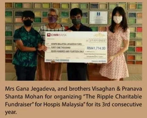 The fundraising project has been titled The Ripple Effect in fond memory of their uncle, Mr. Jegadeva, who had received palliative care from Hospice Malaysia, and an individual who had worked endlessly on charity projects as well. He was also a man who constantly expressed how much incredible work the Hospice does for the public. The kind-hearted Pranava has shared how his brother will also accompany him during this charity project as a form of guidance. Pranava has also shared how his family has always been a pillar of support for his work; his mother, especially, has shared with him the golden advice, “Make sure to multiply the seed funding by 150%” His mother had learned that saying from Brian Lariche, Head of Community Development for the Make It Right Movement, with whom she has formed a great relationship through her many collaborations as a social entrepreneur with the organisation.