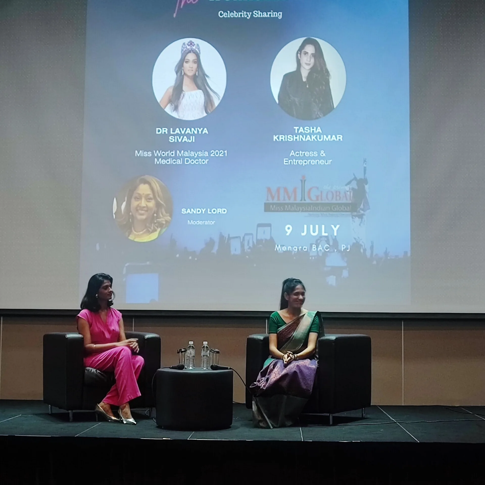 The symposium was also graced by the highly distinguished and acclaimed allumni of MMIGLOBAL, Dr. Lavanya Sivaji, a doctor as well as a beauty queen who was crowned Miss World Malaysia 2021 and who had the prestigious opportunity to represent Malaysia in Miss World 2021. Accompanying her during the session was Tasha Krishnakumar, an incredibly talented actor who has worked on successfully acclaimed works such as Magarantham and Manmadhan Bullets. The young actress is also an immensely successful entrepreneur who created the Indian fashion label Kedai.lah. Both of these professionally accomplished women discussed in depth their careers, their journeys, and the much-needed professional advice towards younger women who yearn to follow their path in becoming powerfully established women themselves. These two incredible Malaysian Indian women were previously part of the Top 5 Winners of the 2019 MMIGLOBAL Competition.