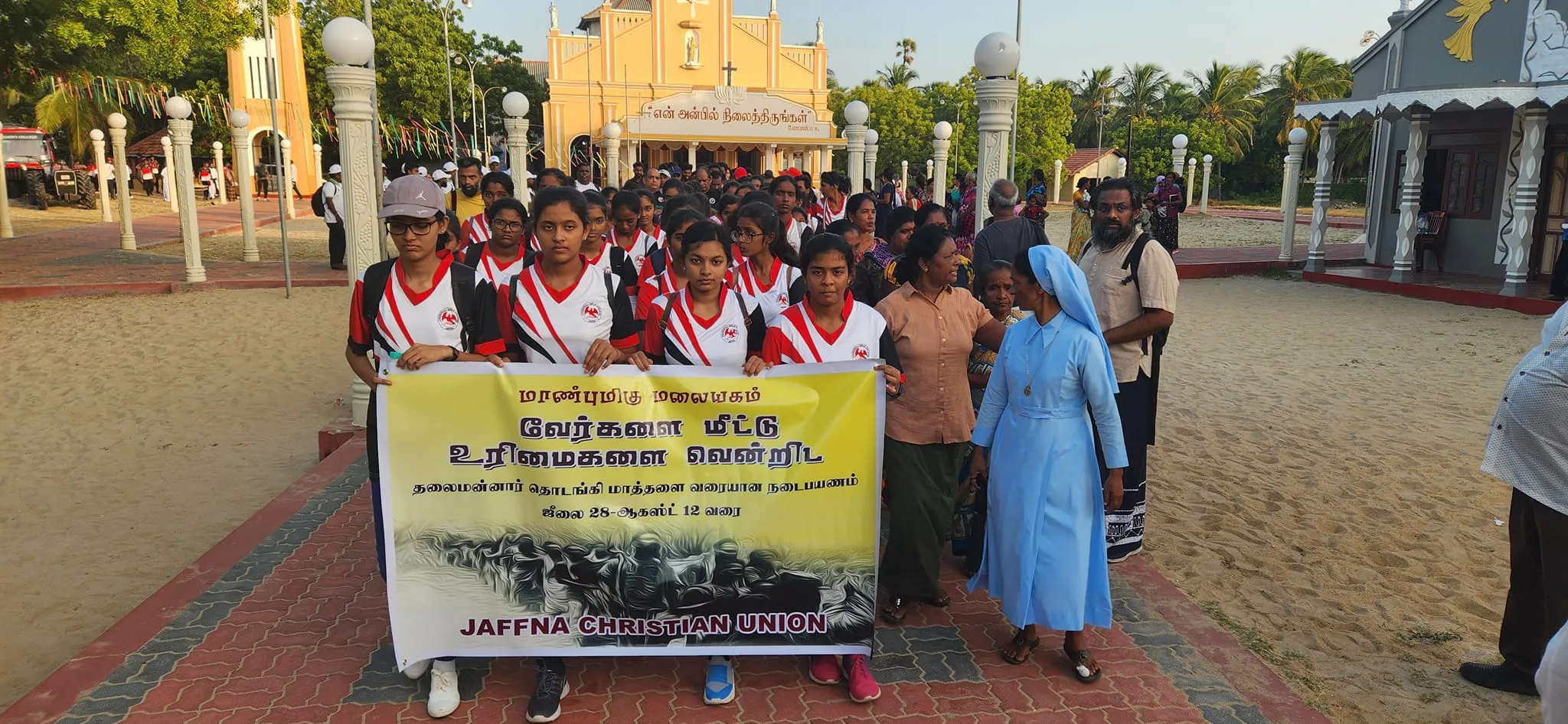 This march saw people from various faiths and communities come together to show unwavering love, hope, and solidarity for the liberation of the Malaiyaha Tamils. This expression of political solidarity and fraternity between communities is an important sight to witness, for it is foundational to creating a popular front for political change to happen in the island nation. The march has also been joined by several elderly people, who, despite the long walk and their blistered feet, were committed to participating in this significant celebration of their history and mobilisation for the future of their political sovereignty.