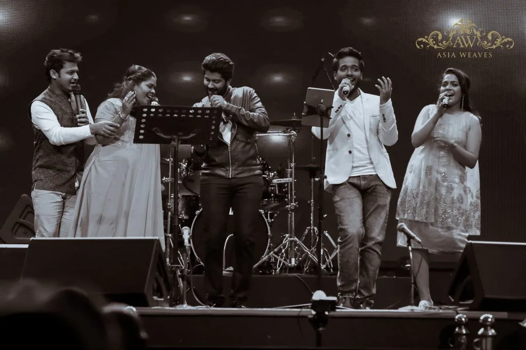 In 2017, prompted by my Mother and nurturing my heart’s calling yet again, Asia Weaves ventured into new territory – this time Event Management hosting our maiden event, The Super Singers 5 of Vijay TV Fame: A Musical Journey Through Time with performer par excellence Anand Aravindakshan accompanied by Rajaganapathy, Fareedha, Siyad & Lakshmi Pradeep which was hosted by our very own Aanantha of THR Raaga fame.
