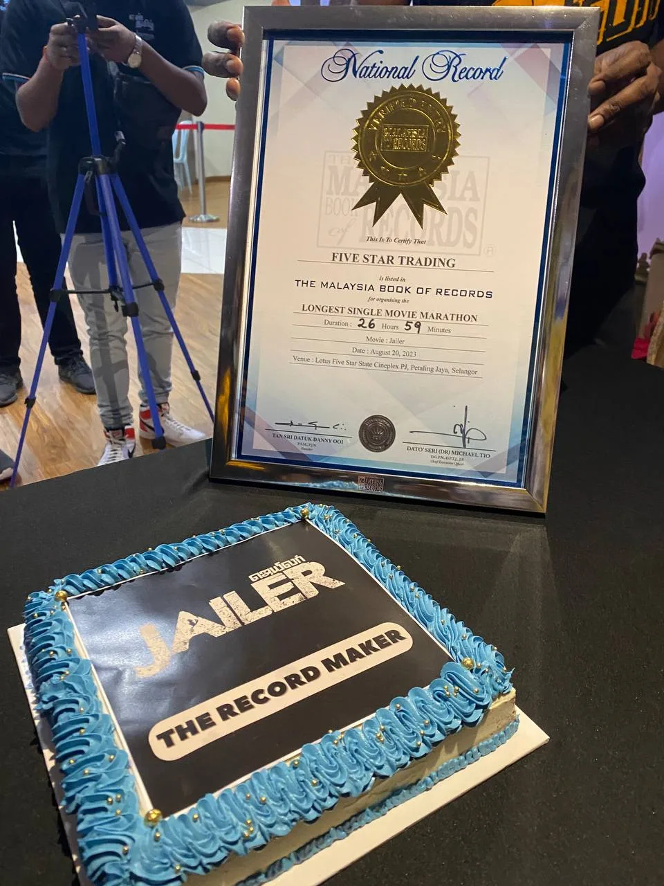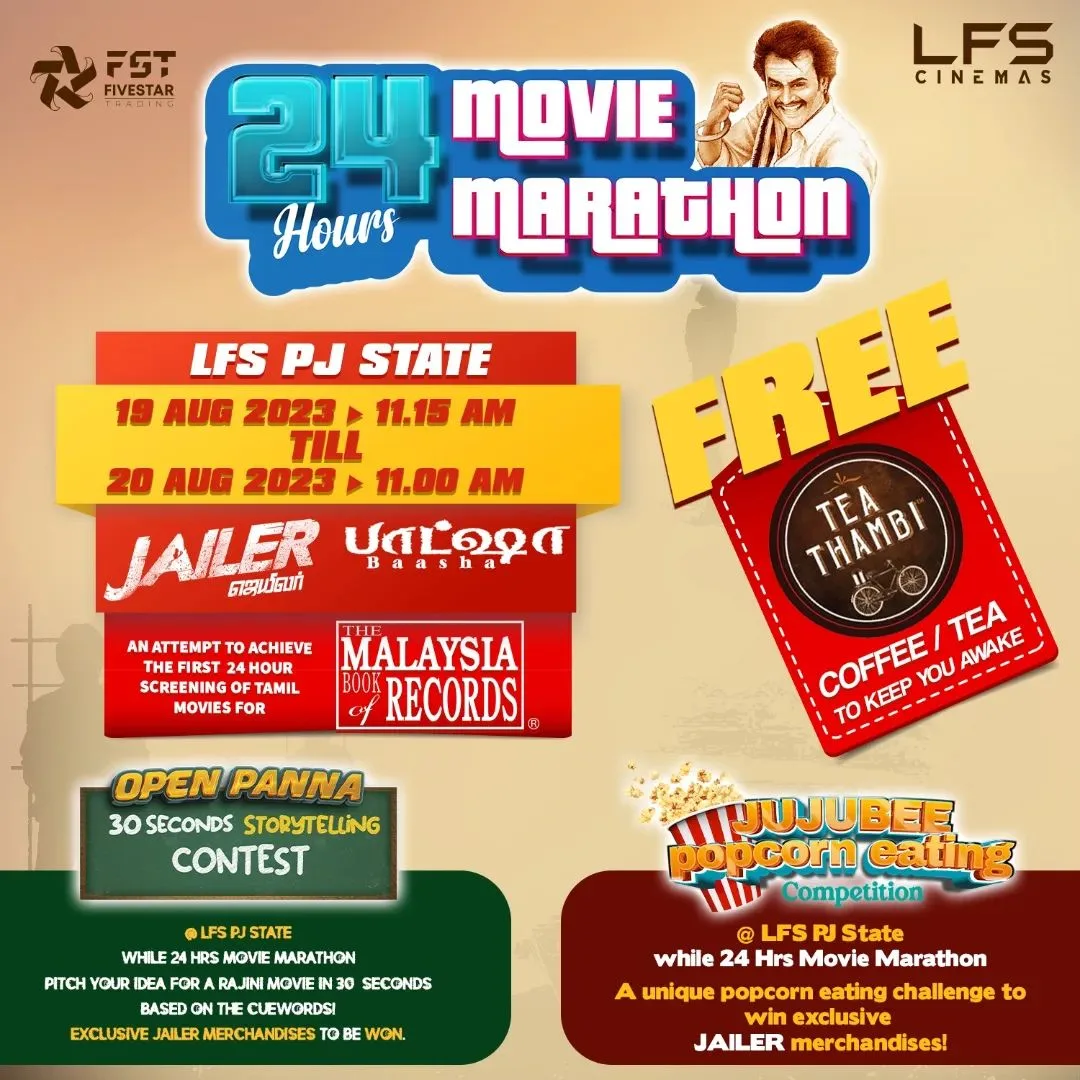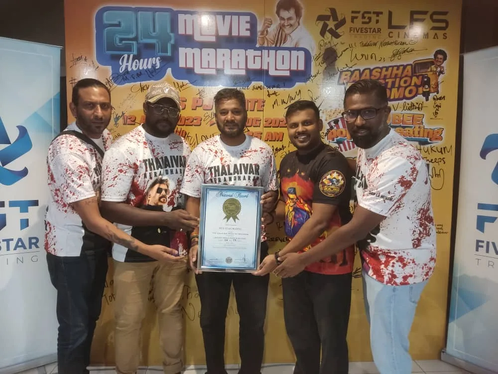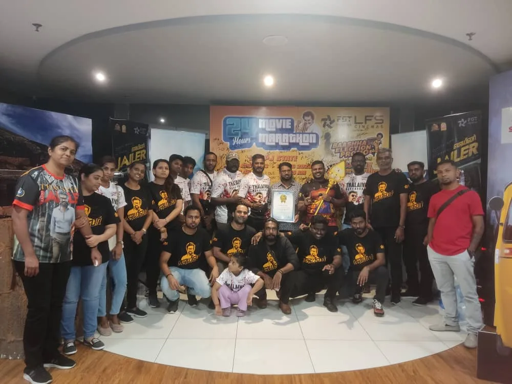 Hence, Thalaivar fans has created a history in Malaysian cinema industry. Five Star Trading and Lotus Five Star Cinemas has successfully completed their astonishing attempt of 24 Hours Movie Marathon and embarked their name in The Malaysia Book of Records for “longest single movie marathon” for “JAILER” by clocking in 26 Hours 59 Minutes.