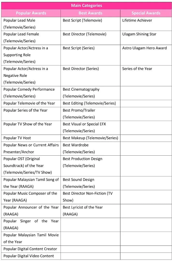 In that case, “Ulagam Awards” is a great initiative to honour our Malaysian artists. ‘Ulagam Awards 2023’ includes 14 new categories out of the 36, including ‘Popular Malaysian Tamil Movie of the Year’, ‘Popular Digital Content Creator ‘ and ‘Popular Digital Video Content’. The ‘Popular Awards’ category received 286 nominations from local production houses. All award categories are listed below: