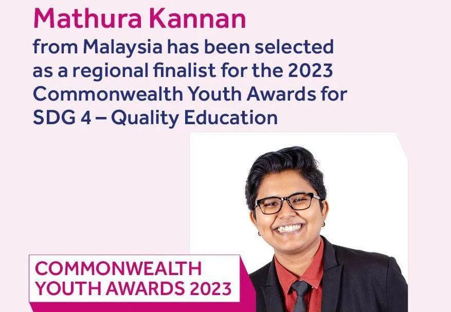 Mathura Kannan, Co-Founder and Advisor of Ascendance, an International Youth Organization in Malaysia, has been named a finalist for the 2023 Commonwealth Youth Awards for Excellence in Development Work out of around 1,000 entries. Organized by the Commonwealth Youth Programme, these awards recognize and celebrate exceptional individuals aged 15 to 29 across the Commonwealth who lead impactful and sustainable development efforts within their communities.