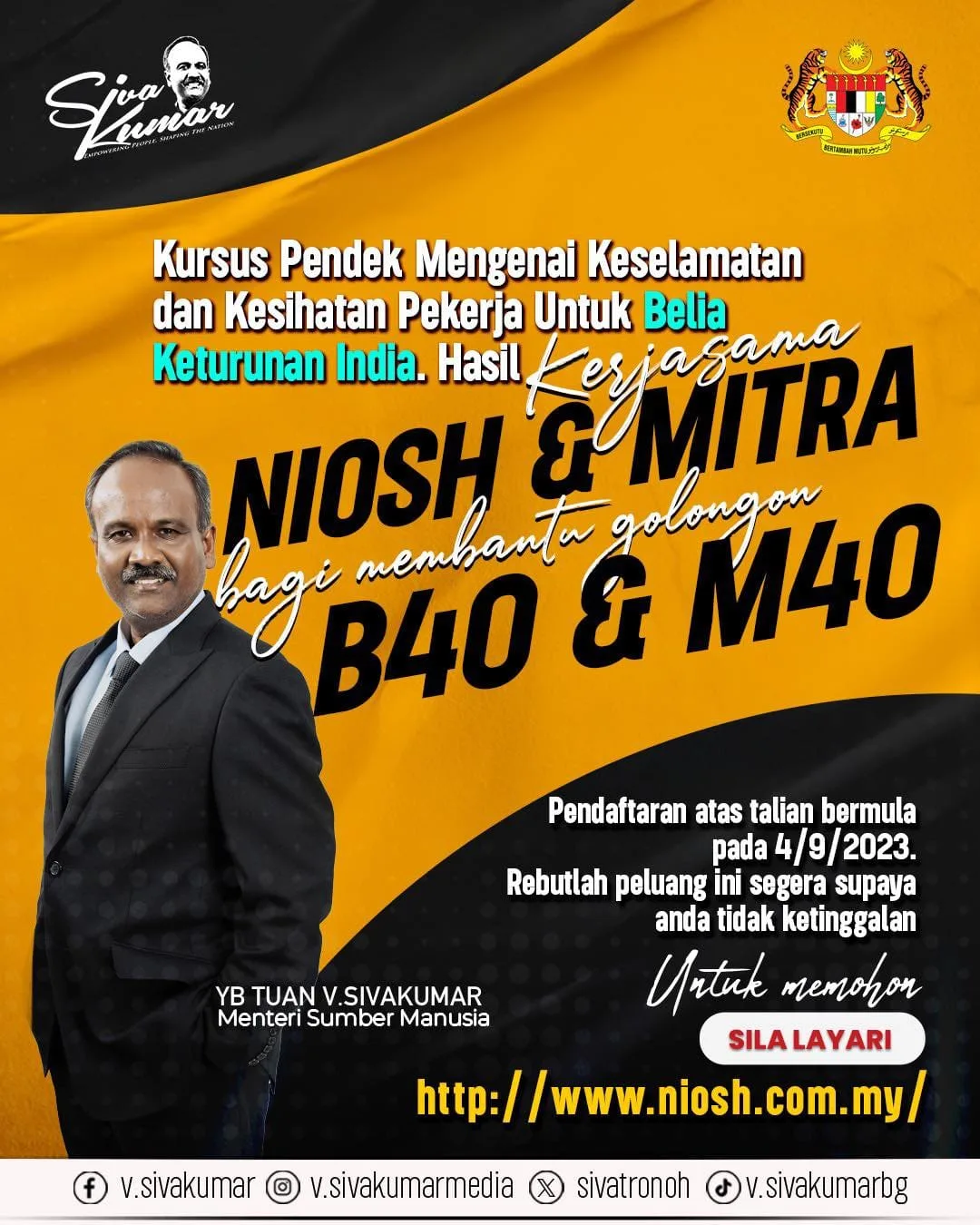 Additionally, Human Resource minister Sivakumar mentioned that his ministry’s goal for this year is to enroll 960 individuals in the Occupational Safety & Health (OSH) Competency program. He also highlighted that 172 Indian youths from the B40 category, who have completed the NIOSH-Mitra program, have successfully obtained suitable employment thanks to the skills they acquired.