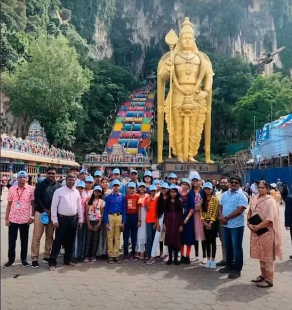 Followed by that, they also visited the iconic temple in Malaysia which is Batu Cave. Batu Caves Temple in Malaysia, a renowned Hindu pilgrimage site, boasts massive limestone caves adorned with colorful statues and shrines, offering a stunning blend of spirituality and natural beauty which serves as the pride of Malaysia. Batu Caves Temple would serve as the best place for an educational trip by providing insights into Hindu culture, history, and natural formations, promoting cultural understanding and environmental appreciation among students.