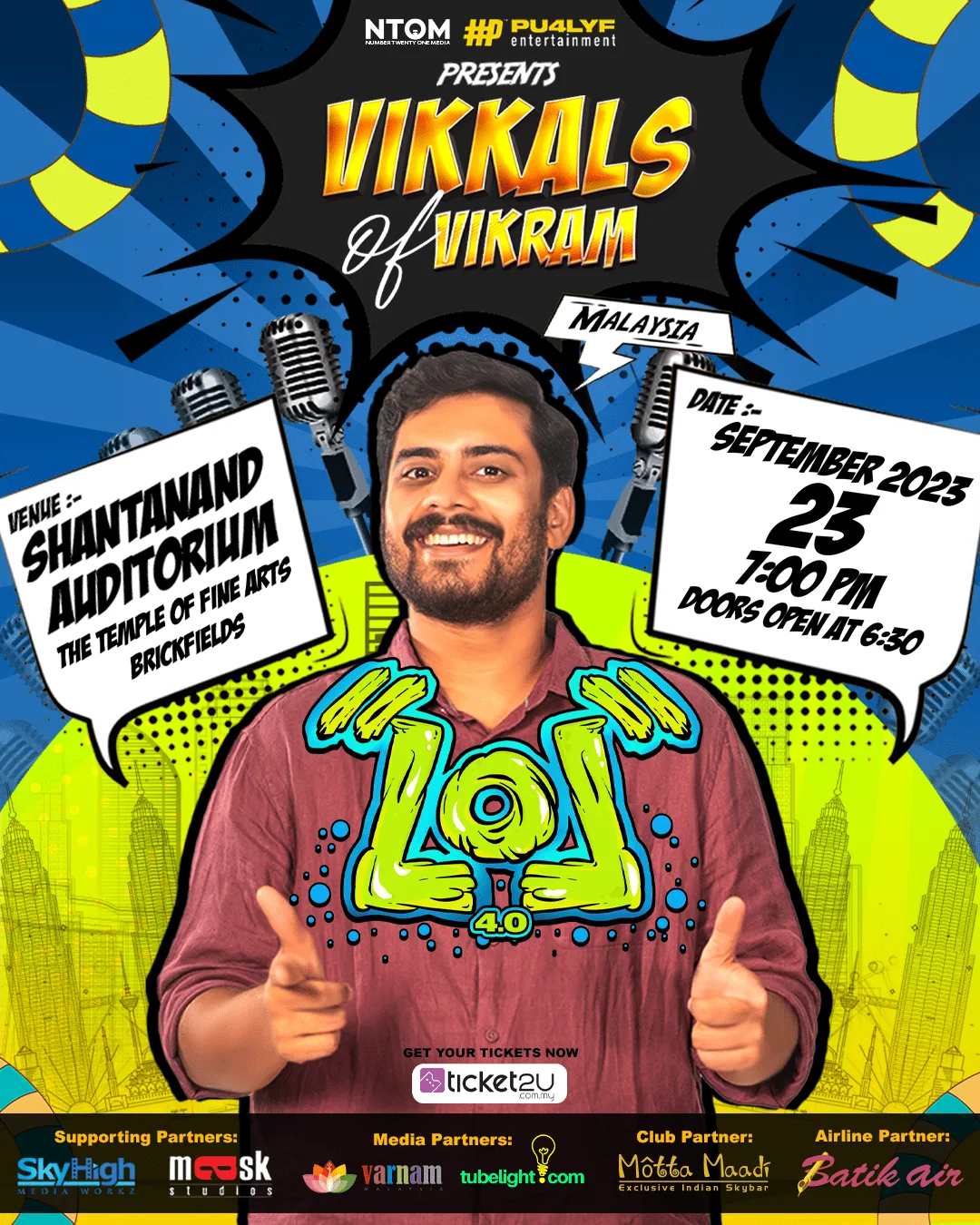 One of the most popular trending comedians, Vikkals Vikram, will be having a solo show titled LOL 4.0: Vikkals of Vikram on September 23, 2023, at the Shantanand Auditorium, Temple of Fine Arts, Brickfields. This stand-up comedy show is proudly brought to you by the collaboration of both Number Twenty One Media and PU4LYF Entertainment.