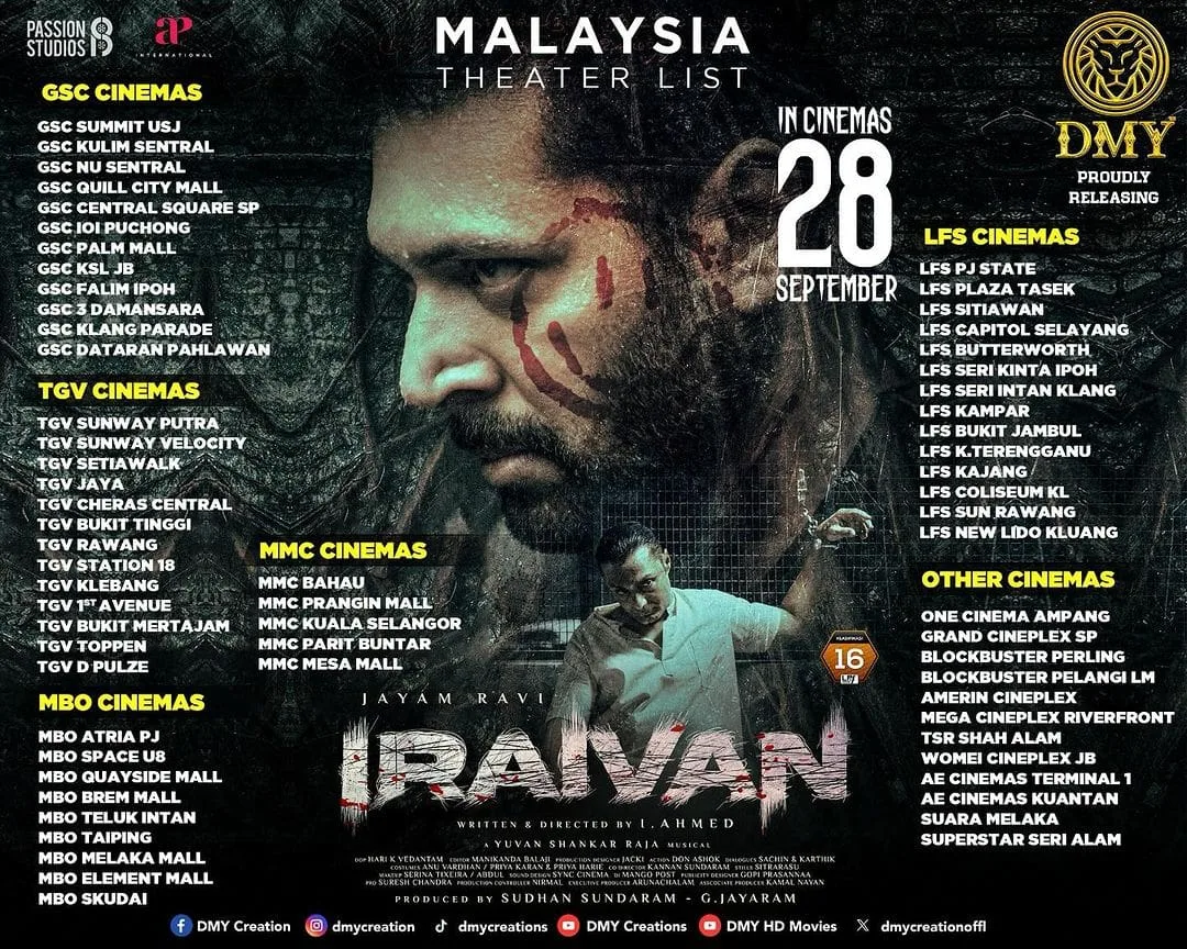 Catch ‘Iraivan’ in cinemas near you. Here is the list of cinemas where the movie will be screened.
