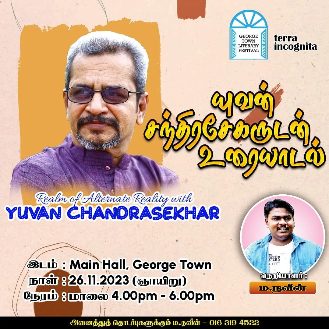 George Town Literary Festival (GTLF), one of the most highly acclaimed and anticipated literary festivals in Malaysia, will be happening from November 23–26. This event, which celebrates and critically engages with the art of literature across borders and languages, will feature 35 writers from 13 different countries. This year, the Tamil portion of the festival will see the famous Tamil Nadu writer, Yuvan Chandrasekar.