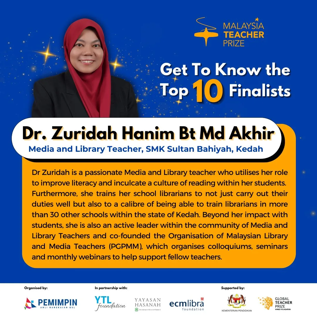5. Dr Zuridah Hanim Bt Md Akhir, Media and Library Teacher, SMK Sultan Bahiyah Kedah
