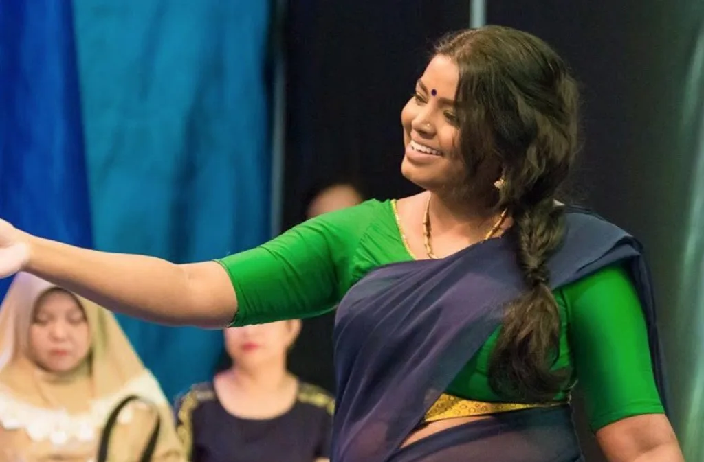 The actors really performed bravely and were very natural. Prem has a marvellous sense of stage presence. The actor knew his art and I really hope he gets involved in many more other plays. Personally, I feel, Hannah has a power to captivate the audience in a indescribable way. Her voice projection and quirkiness really elevated the significance of her character. As an actor, Hannah has understood the Indian culture well. Spoiler alert!! There was a part of the play where Slyvia wears a fiery red saree, and she wore it with such elegance. It almost feels like, it is not her first time wearing a saree. She knew how to move, without making it awkward. She must have really studied her mise en scene really well. Shangkharee gave us a goosebumps moment when she delivered her dialogue, ” I am me and that’s enough”. She did a first class performance in this play and I don’t think anyone would believe that this is her first play. The boldness, the intonation and articulation of dialogue was very calm and clear. Her pleated saree look gave me Indira Gandhi vibes.