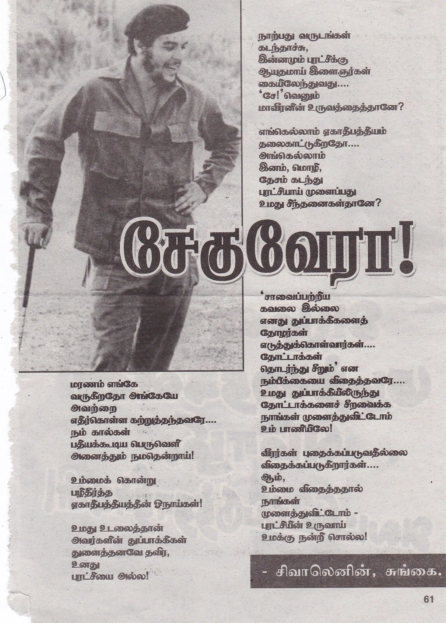 Siva Lenin is a writer who has a keen interest in bringing to light the social, political, and economic history of Tamils in Malaysia. Another one of his works is a book on the life of the revolutionary Sybil Kathigasu, who helped provide medical aid and services to the Malayan People’s Anti-Japanese Army during the brutal Japanese occupation of Malaya. Siva’s writing career also contains essays and poetry on revolutionaries and social issues pertaining to the importance of speaking one’s mother tongue, anti-caste politics, and workers liberation, to name a few.