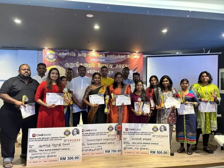 The champion of the short story writing competition is Megala Thevi Varatharajan. She received a mock cheque worth RM700 along with a trophy and certificate from Oms Thiagarajan. Lashri Shankar became the first runner up of the competition and received a mock cheque worth RM500 together with the certificate and trophy. Third place was sealed by Anantha Jothi Segar with mock cheque for RM300, certificate and trophy. Additionally, there were 10 participants received special prize which is RM100.