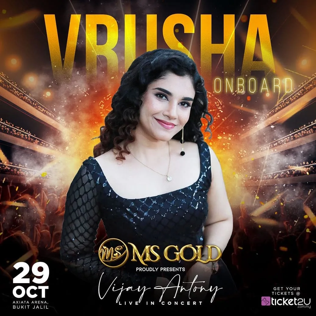 Singer Vrusha is a well known singer who was initially a participant in Super Singer, India’s well known singing competition. She has an unique voice which suits mostly rocking and high pitch songs which is the signature genre of Vijay Antony. Vrusha could also present melody songs. She has performed in Vijay Antony concert happened in Chennai. She rocked the stage while performing Vijay Antony’s most popular song, “Machakanni” with him. Notably, she was also on board for “The Name Is Vidyasagar” concert happened at Malaysia this month.