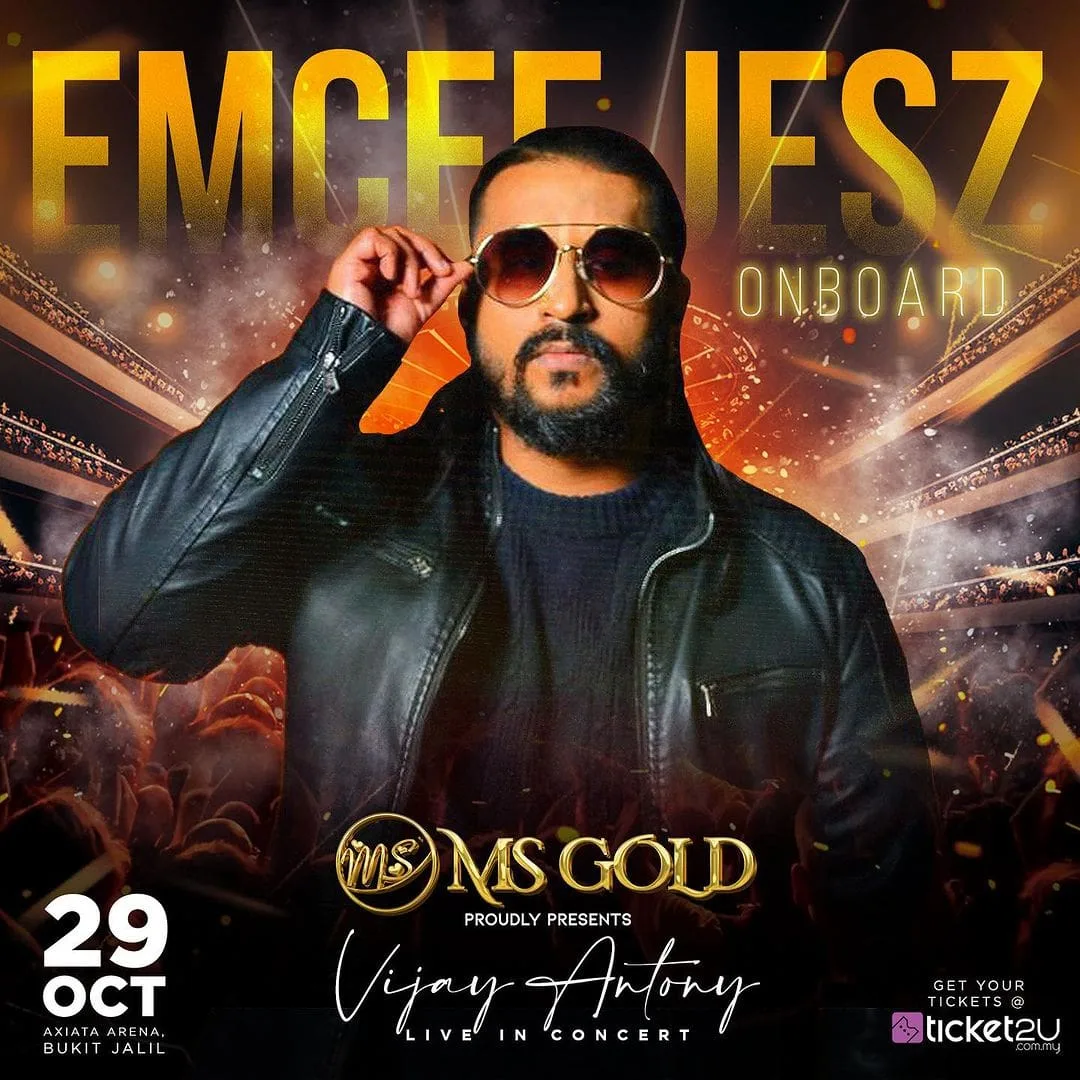 Emcee Jesz is also on board for Vijay Antony concert. He is a well known rapper and hip hop artist in Malaysia. Notably, he has sung in few hit compositions of Vijay Antony such as “Usumalarassey” song from “Uthamaputhiran” and “Kaathalikke Pen Oruthi” from “Vedi”. These tracks are popular dance hits of Vijay Antony.