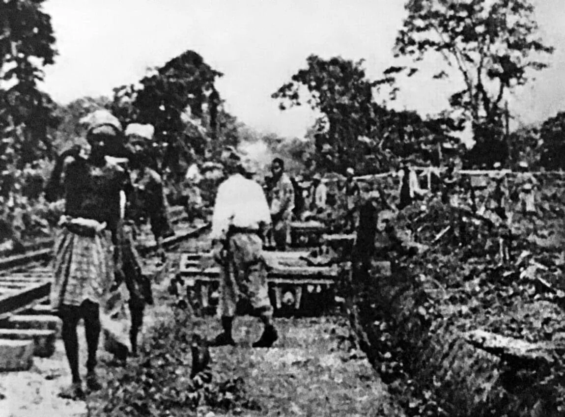 Their workers were mainly those taken from Malaya. The Burmese section of the railway was built by Burmese labourers. The Thailand portion of the railway was built using the Tamil laboueres from the rubber plantations. Along with them, there were also Javanese, Malayan Malays, Chinese, and workers from Indo-China who were used as forced labourers. But for the most part, it was Indian labourers from Malayan rubber plantations.