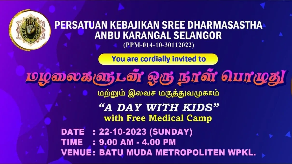 Sungai Tua Sree Dharma Sastha Aanbu Karangal recently conducted a great one-day fun and free medical camp for Kindergarteners in Batu Muda Metropolitan, Kuala Lumpur. This session drew about 350 persons, including Member of Parliament P. Prabhakaran and other dignitaries.