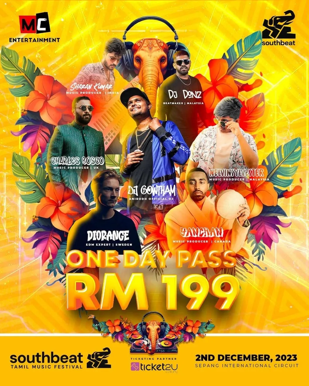 MC Entertainment is organising a Tamil Music Festival called “The Southbeat 2023”. This event will be happening on 2nd December 2023 at Sepang International Circuit from 4pm to 12am. Anticipating a sizable turnout, the organizers expect approximately 7,000 attendees to grace the occasion.