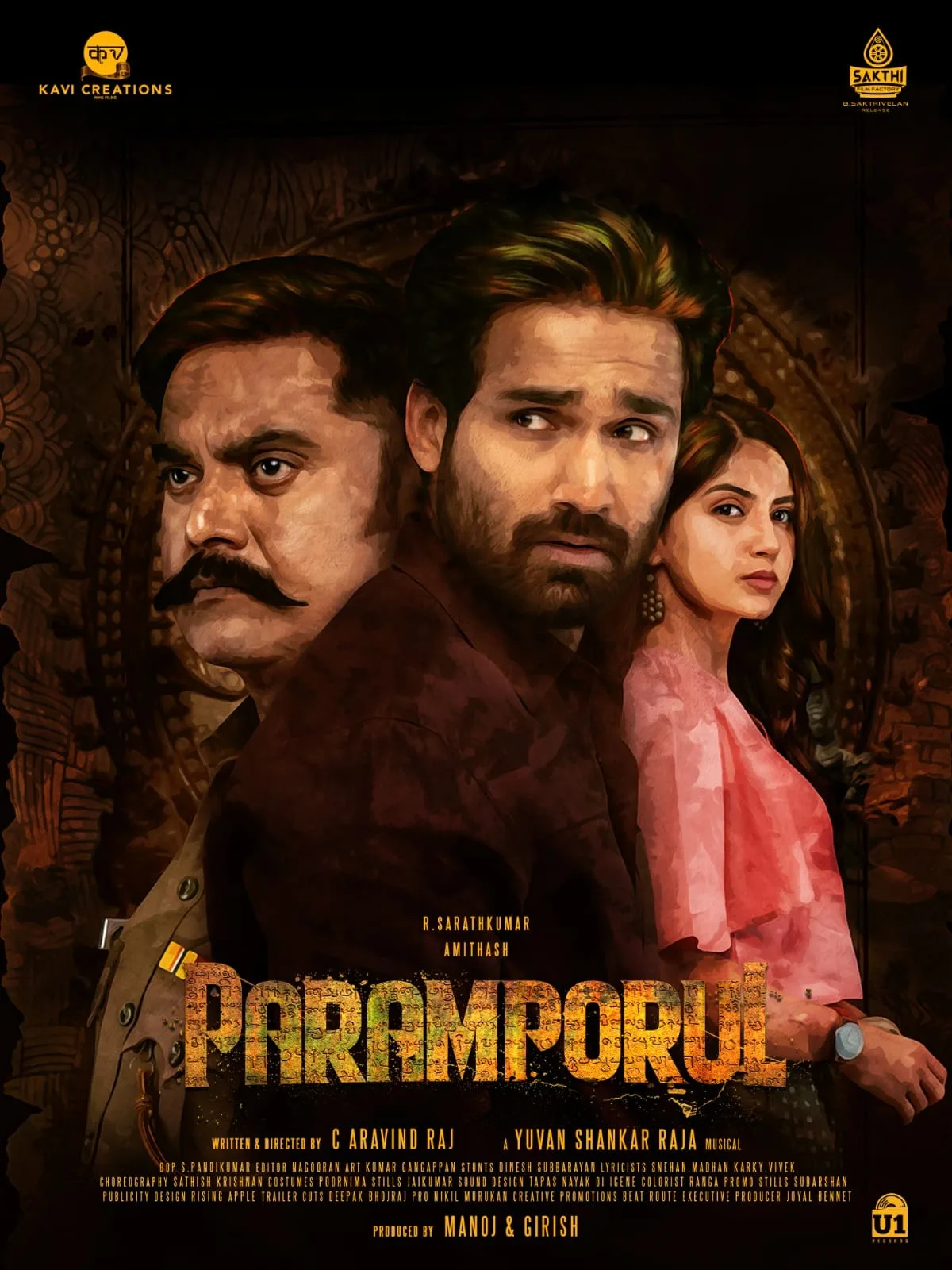 Under the direction of C. Aravind Raj, “Paramporul” is a gripping crime thriller that features an ensemble cast including Sarath Kumar, Amitash Pradhan, and Balaji. The film’s plot revolves around a clandestine operation involving the smuggling of sacred idols from a temple, and a police officer who finds himself entangled in this criminal underworld due to an unusual connection with a murdered victim’s spirit.