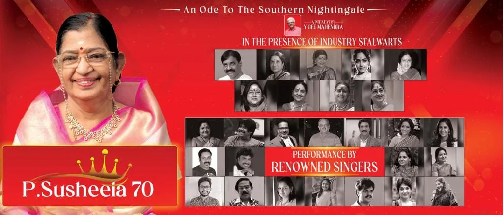 The show will serve as a tribute to the esteemed P. Susheela, the legendary Indian playback singer, who has achieved a remarkable milestone of 70 illustrious years as a playback singer. This show premieres on 12 November at 11am and includes other well known artists such as Kaviperarasu Vairamuthu, Venniradai Nirmala, Bharathi, Latha, Kanchana, Jayachitra, Sachu, SPB Charan, Unni Menon, Ananthu, Mukesh, Sai Vignesh, L.R. Easwari, K.S. Chitra, Uma Ramanan, Anuradha Sriram, Kalpana, Swetha Mohan, Mahathi, Saindhavi and many more.