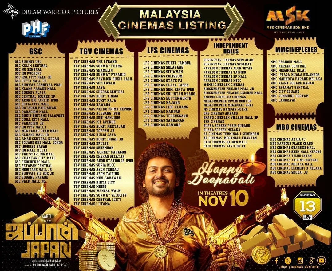 Karthi’s charm and the boy-next-door vibe will surely keep the audience entertained throughout this film as well as it is a very promising entertainment factor for Deepavali. According to the cinema listing, the film will be shown at a number of theatres in Malaysia. Don’t forget to purchase your tickets. Get your tickets by clicking here.