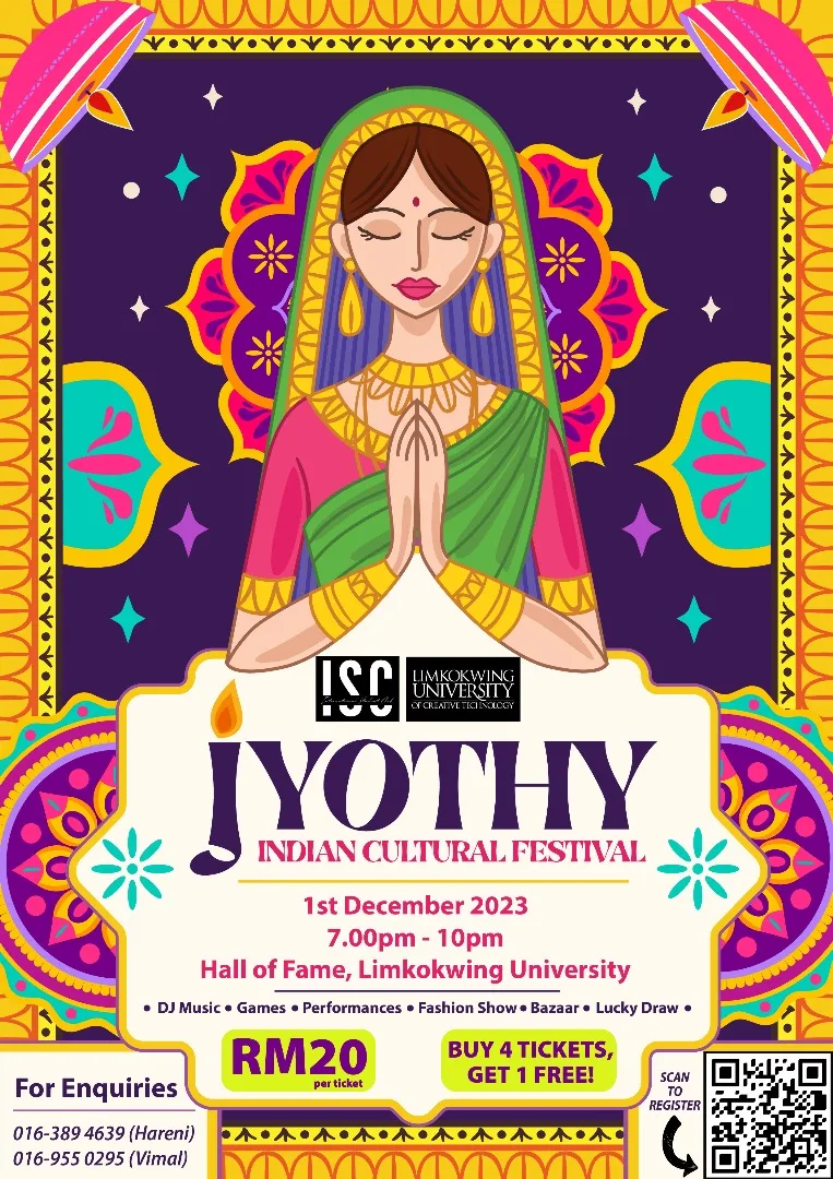 “Jyothy 2023” is happening on 1st December 2023, Friday at Hall of Fame, Limkokwing University, Cyberjaya from 7pm to 10pm!