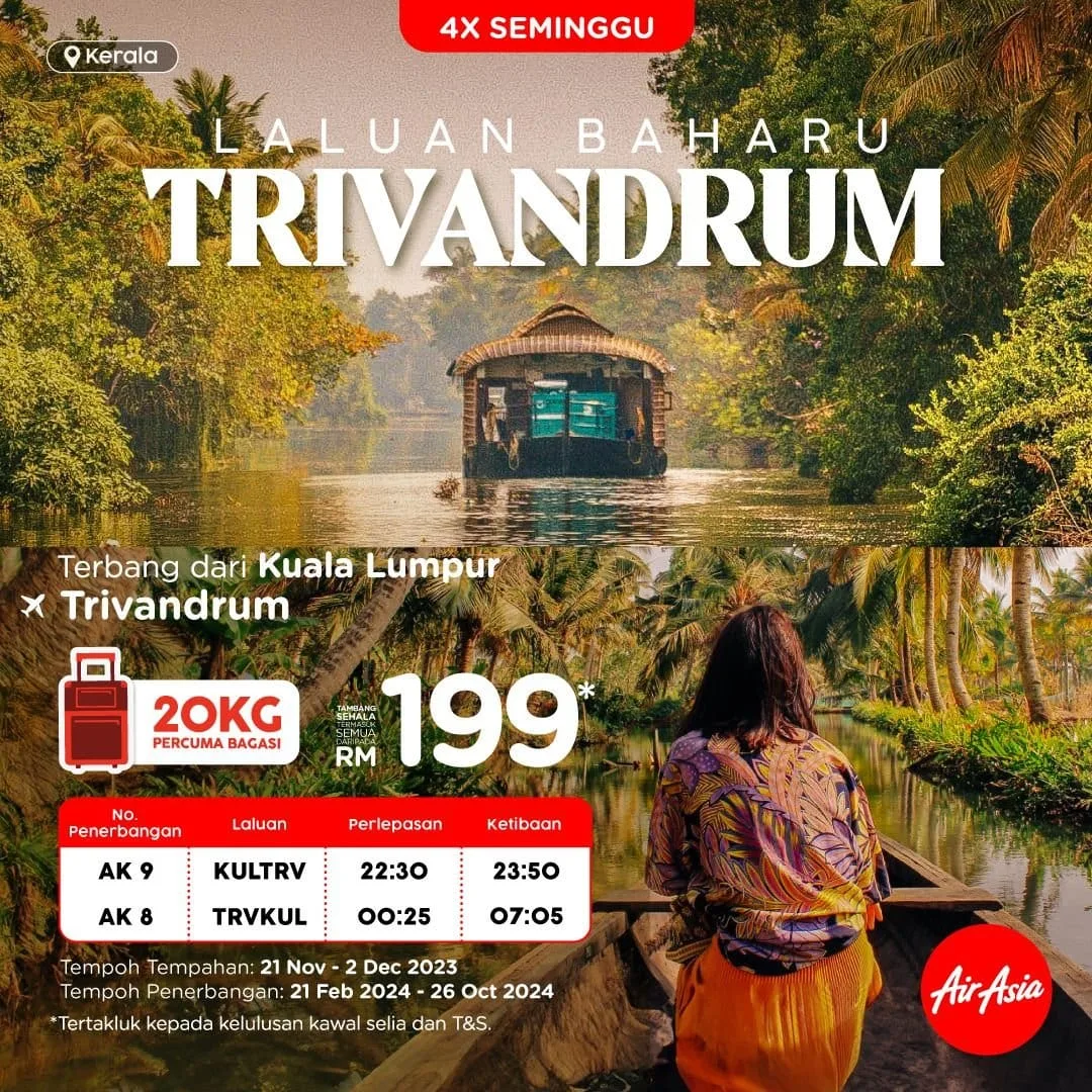 CEO of AirAsia Malaysia, Riad Asmat, said: “We’re thrilled to strengthen our presence in India with this new route to the historically rich city of Thiruvananthapuram. Last year marked a momentous milestone for us when we began gradually resuming our key destinations in India, post-pandemic. With this new route launching in February next year, we will soon be flying direct to total of 9 stunning destinations across India from north to south with a total of 71 flights weekly ‒ with more to come.”