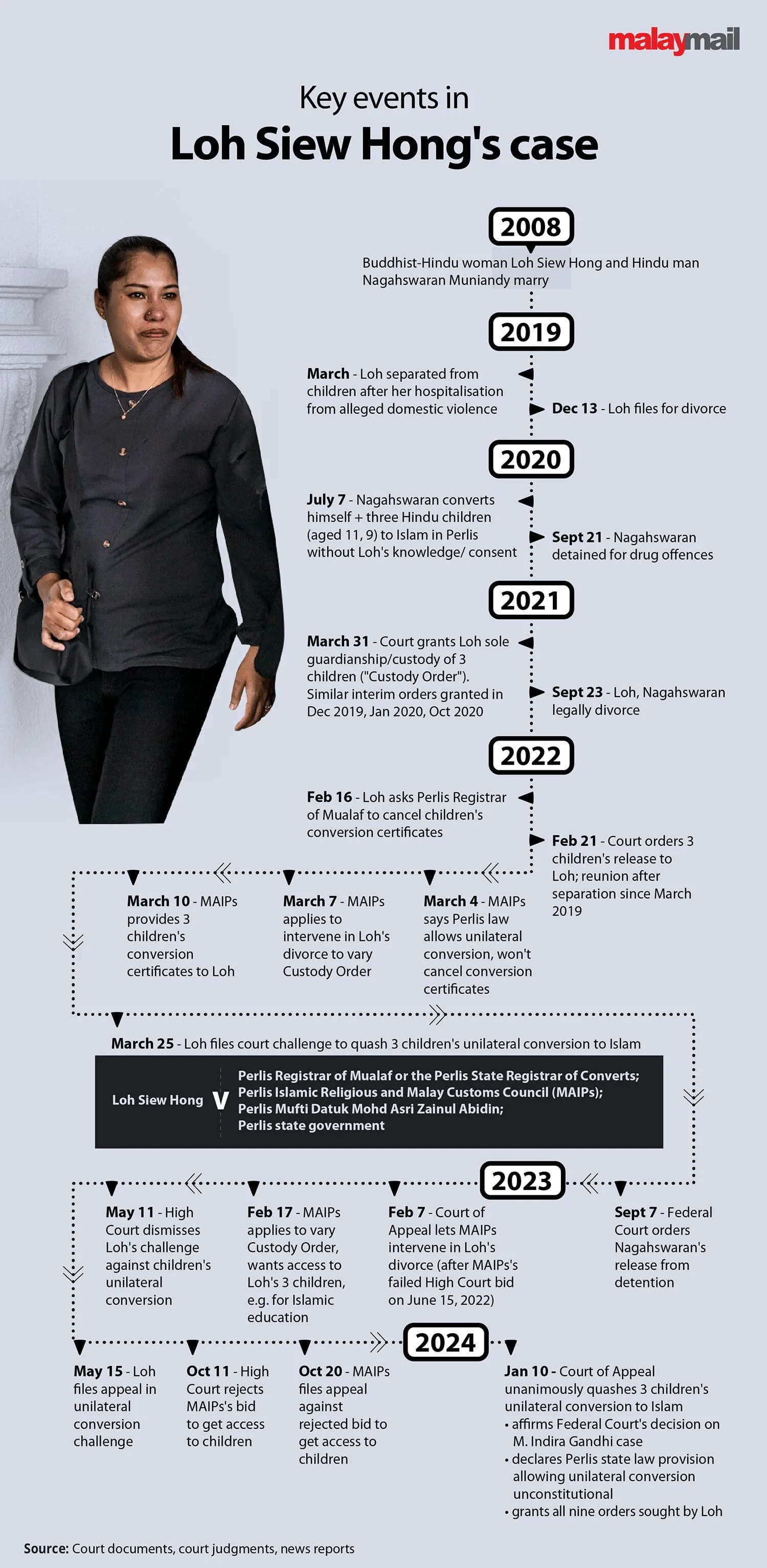 Judges Datuk Hashim Hamzah and Datuk Azhahari Kamal Ramli were part of today’s panel. On March 25, 2022, Loh initiated a legal challenge by filing a judicial review at the High Court, naming the Perlis registrar of Muslim converts, MAIPs, the Perlis mufti, and the Perlis state government as respondents. Despite the High Court’s rejection on May 11, 2023, of Loh’s challenge against the unilateral conversion of her three children to Islam without her consent, she proceeded with an appeal, leading to today’s Court of Appeal decision that has finally given her justice.