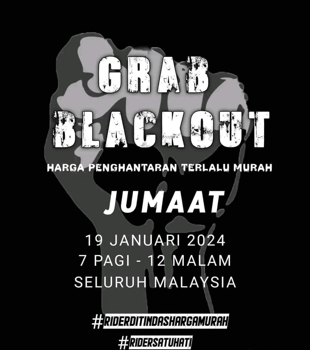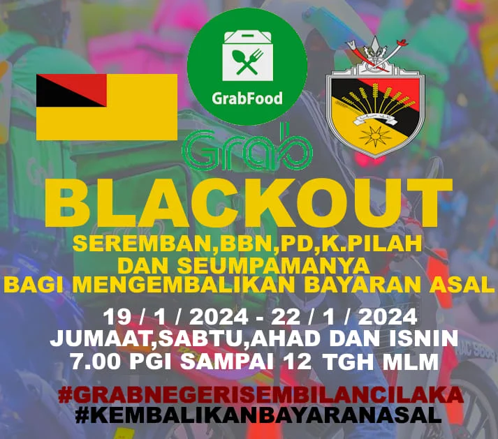 Unhappy Grab employees are staging a boycott called Grab Blackout. What made them to move into such instance? On 16th January , Grab Malaysia came up with updated delivery fee and bonus framework. The Grab riders are unhappy with it sudden change of their earnings. They might get less payment and the calculation is not clear. The call for strike went out on 17th January and they boycott is to be carried out on 19 January Friday from (7am- 12midnight). The posters for Grab Blackout is being circulated in social media gaining public attentions.