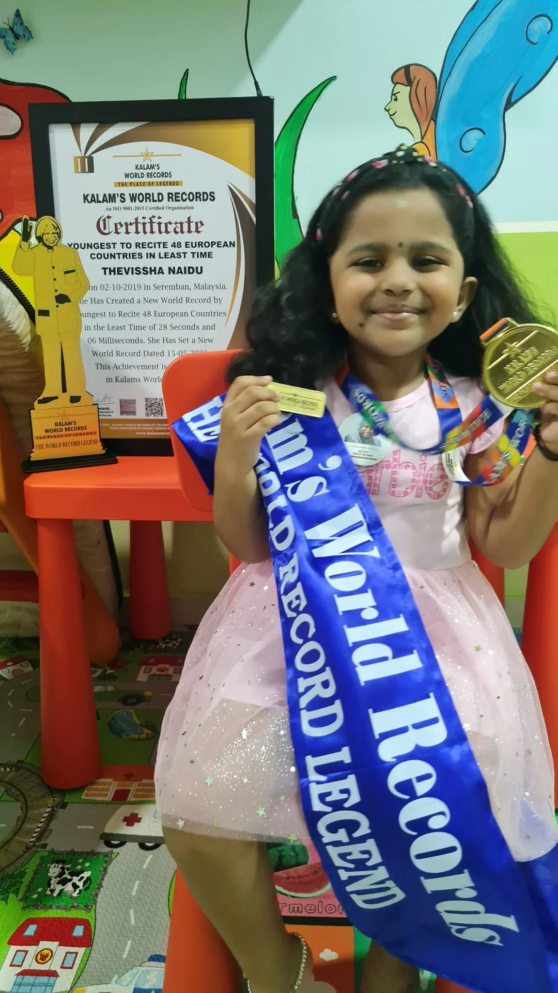 Thevissha Naidu’s journey to success has been nothing short of extraordinary, as reflected in the string of prestigious accolades she has been graced with. In July 2023, she secured records in the Netaji World Records and International Book of Records, highlighting her exceptional achievements on the global stage. Subsequently, in September 2023, Kalam’s World Records recognised her outstanding contributions. Her prowess as a memory athlete reached new heights when she clinched the nationwide champion title at Kids Got Talent Malaysia in May 2023. The pinnacle of her achievements came in November 2023, as she audaciously participated in the American Got Talent auditions. Her amazing talents transcended borders, leading to her victory in the American Awards in July 2023. Capping off an illustrious year, Thevissha Naidu, at the tender age of four, received the “Asia’s Young Child Achiever Award 2023” in December, making her the youngest-ever recipient of this prestigious honour.