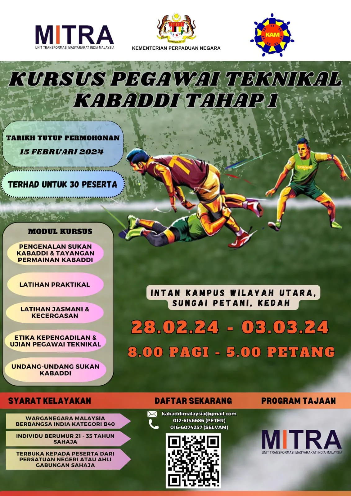 In an effort to empower and cultivate sporting talent within the B40 Indian community, MITRA has announced a Kabaddi Training Program scheduled to take place from February 28 to March 3. The daily sessions will run from 8 AM to 5 PM, offering participants a comprehensive and immersive experience in the traditional Tamil sport. The event will be taking place at the Intan Kampus Wilayah Utara in Sungai Petani, Kedah.