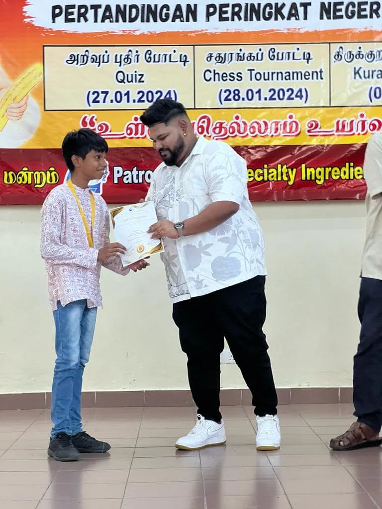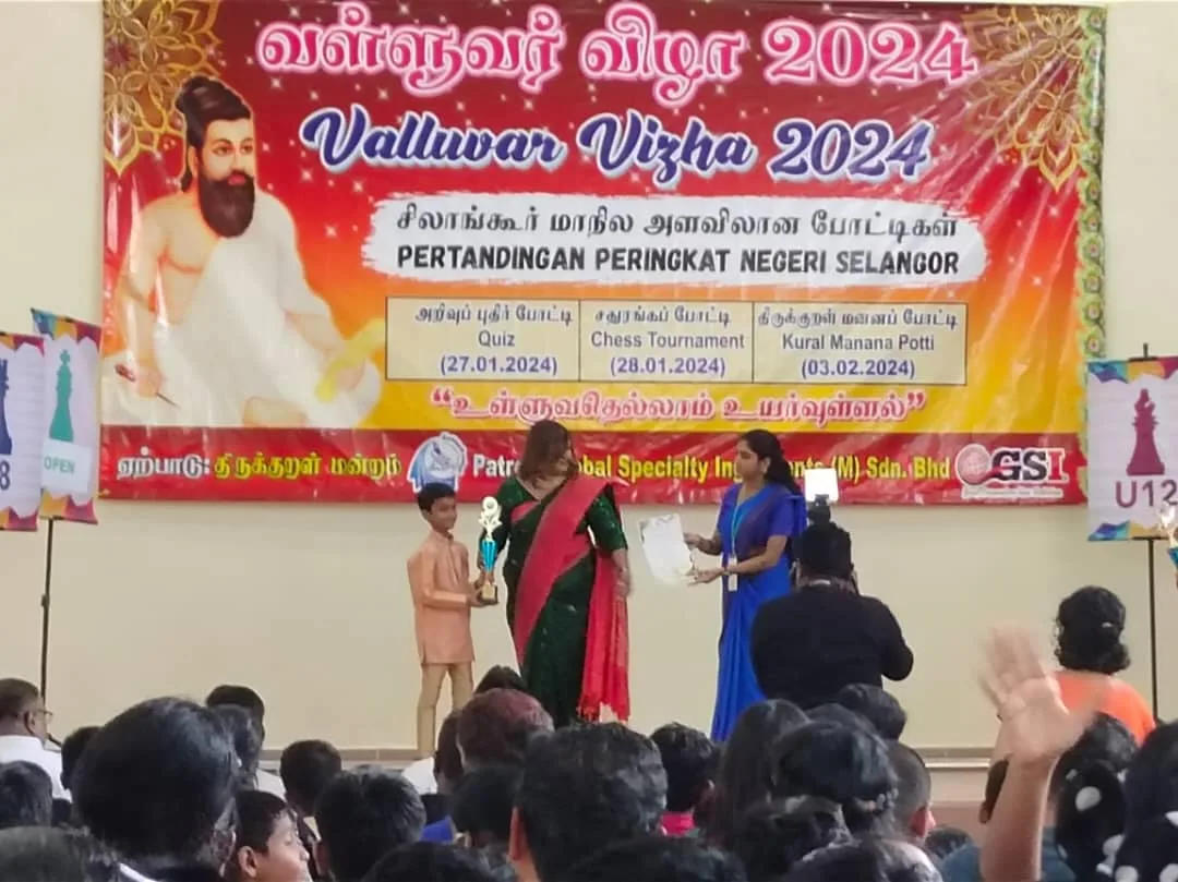 The Thiruvalluvar Hall in Port Klang played host to the Valluvar Vizha 2024, a monumental event that unfolded on January 28. This grand occasion that had been organised by Thirukkural Mandram provided a captivating stage for Tamil students from Selangor, and among the highlights was an exhilarating chess tournament that showcased the strategic prowess of these young minds. Notably, the students of SJKT Puchong emerged as shining stars, creating a remarkable name for themselves at such a young age.