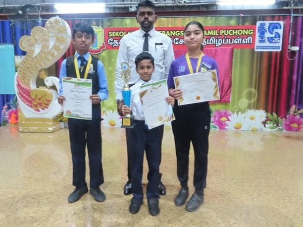 In the Under-8 category, where 23 young enthusiasts showcased their budding talents, SJKT Puchong’s E. Siddharthan exhibited exceptional prowess. Claiming the coveted 1st place, Siddharthan proudly received the gold medal along with a certificate, marking a remarkable achievement at such a tender age. His victory serves as a testament that the young children of today are paving the way for a better and brighter future.