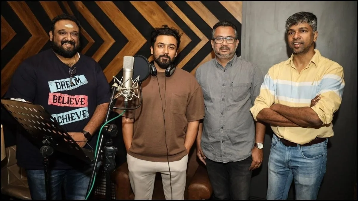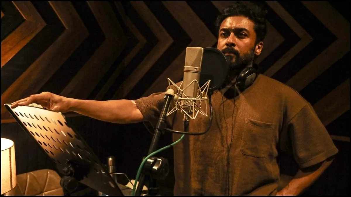 Accompanying the announcement were striking images of Suriya engrossed in the dubbing process, sparking a buzz among fans. The film is expected to be released later this year and will be presented in standard, 3D, and IMAX formats, catering to a diverse audience in over 10 languages.