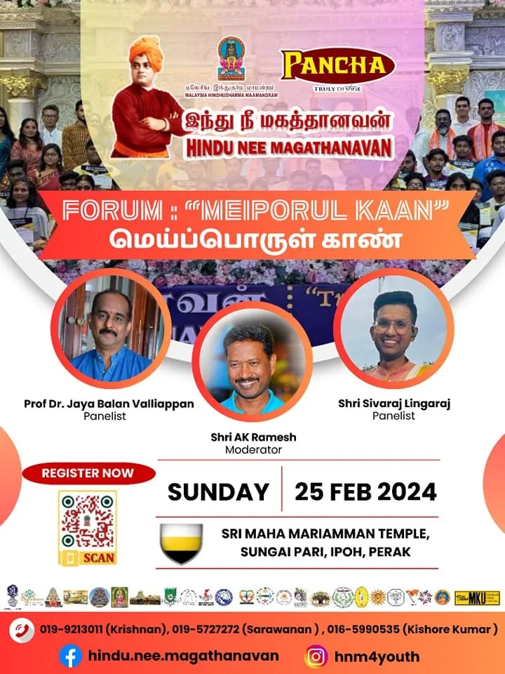 At the heart of the conference lies the enlightening dialogue under the banner “MEIPORUL KAAN.” Esteemed personalities, including Shri AK Ramesh, a motivational speaker and Youth Camp Coordinator, will serve as the moderator, guiding the discourse with wisdom and enthusiasm. Joining him are esteemed panelists: Prof. Dr. Jaya Balan Valliappan, a distinguished gynecologist and President of Malaysia, Muruga Bakthi Peravai, and Shri Sivaraj Lingaraj, an assistant producer and news reader at Astro. Together, they promise to unravel the depths of Hinduism’s relevance in the contemporary world, offering insights and perspectives that resonate with the youth.