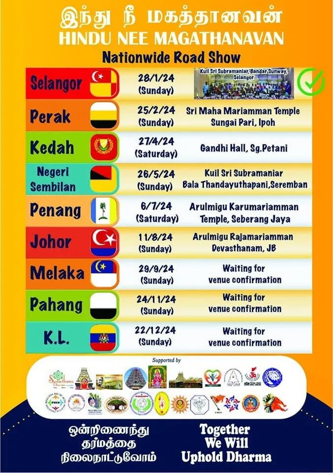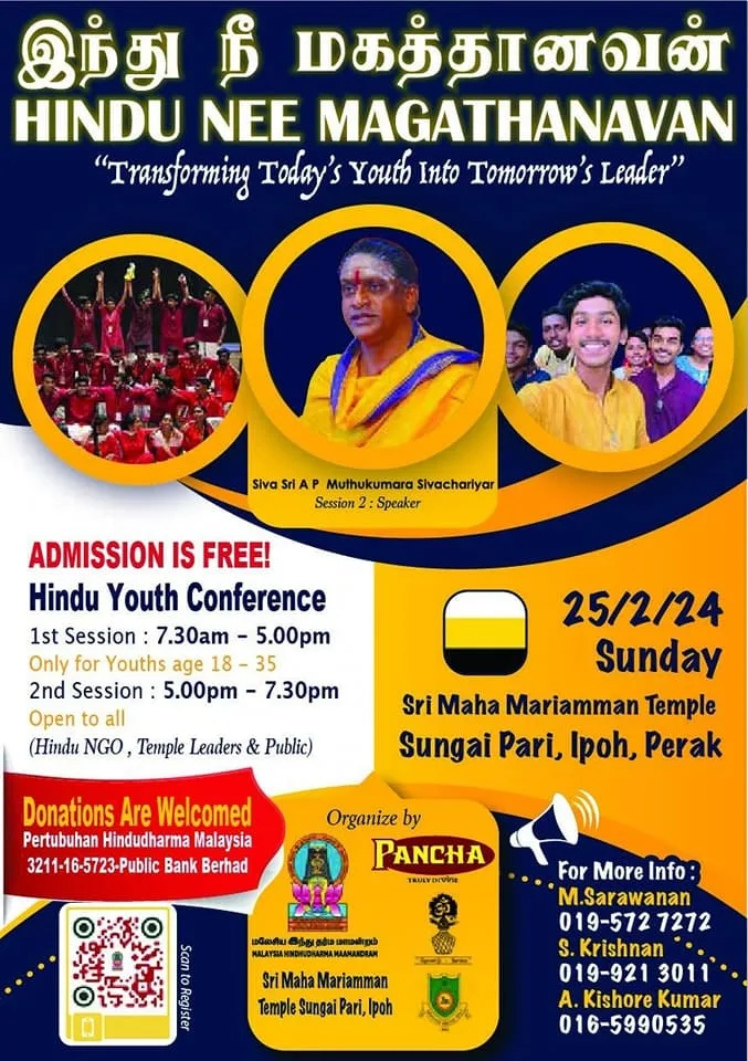 On the auspicious Sunday of February 25, 2024, the Sri Maha Mariamman Temple in Sungai Pari, Ipoh, Perak, will serve as the sacred ground for the next state for the youth conference. With sessions spanning from 7:30 a.m. to 7:30 p.m., the event is meticulously crafted to cater to the diverse interests and aspirations of the attendees.