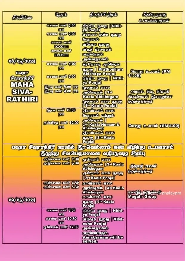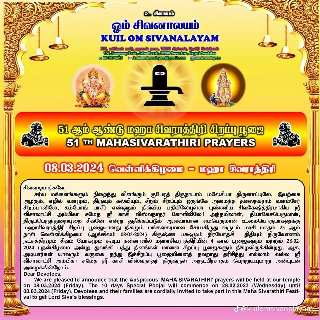 With this list of temples in Klang Valley and Negeri Sembilan, devotees can strategically plan their journey on this auspicious night dedicated to Lord Shiva. The diverse array of sacred sites offers a unique blend of tradition and spirituality, providing devotees with meaningful options to connect with the divine.