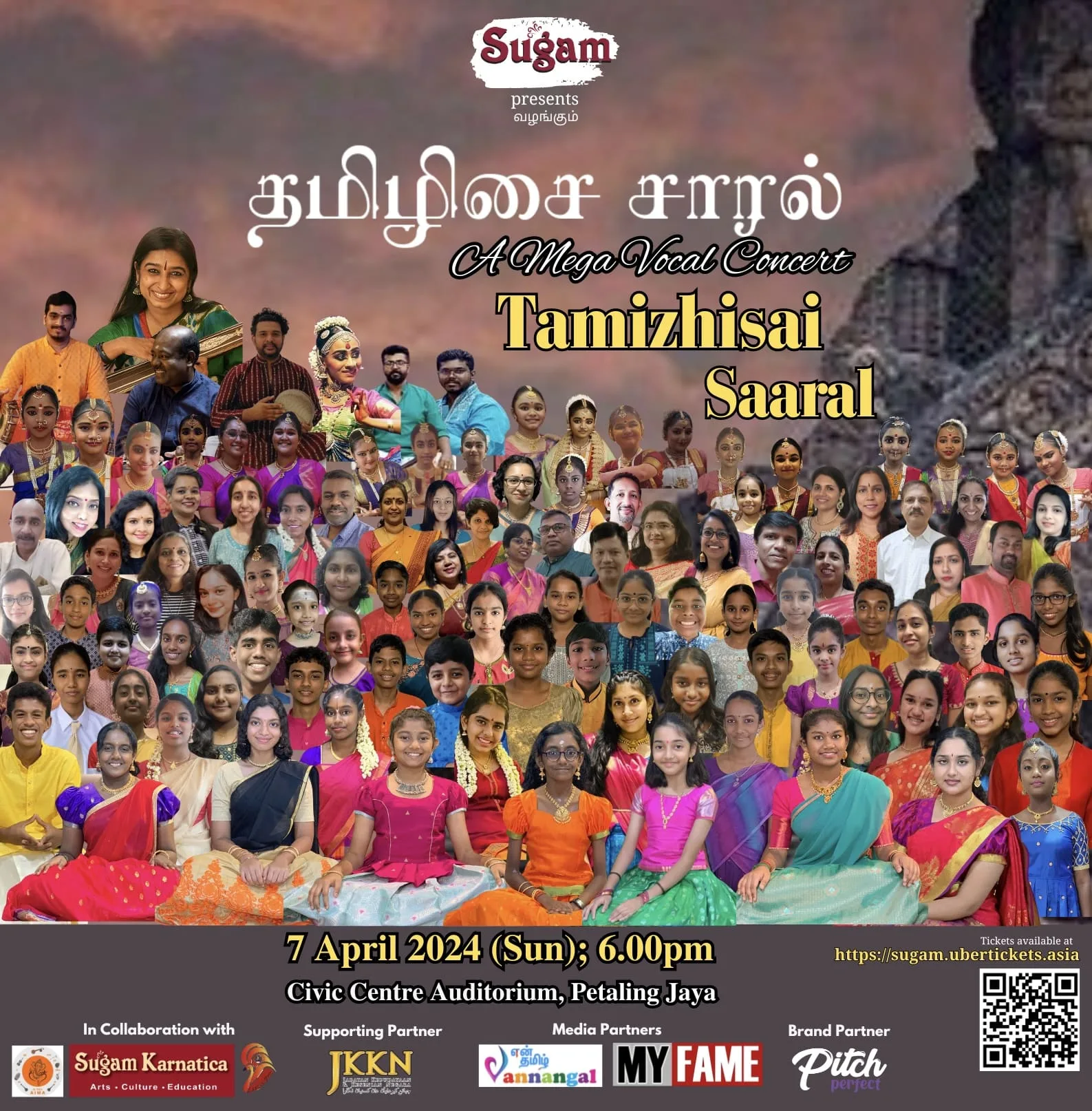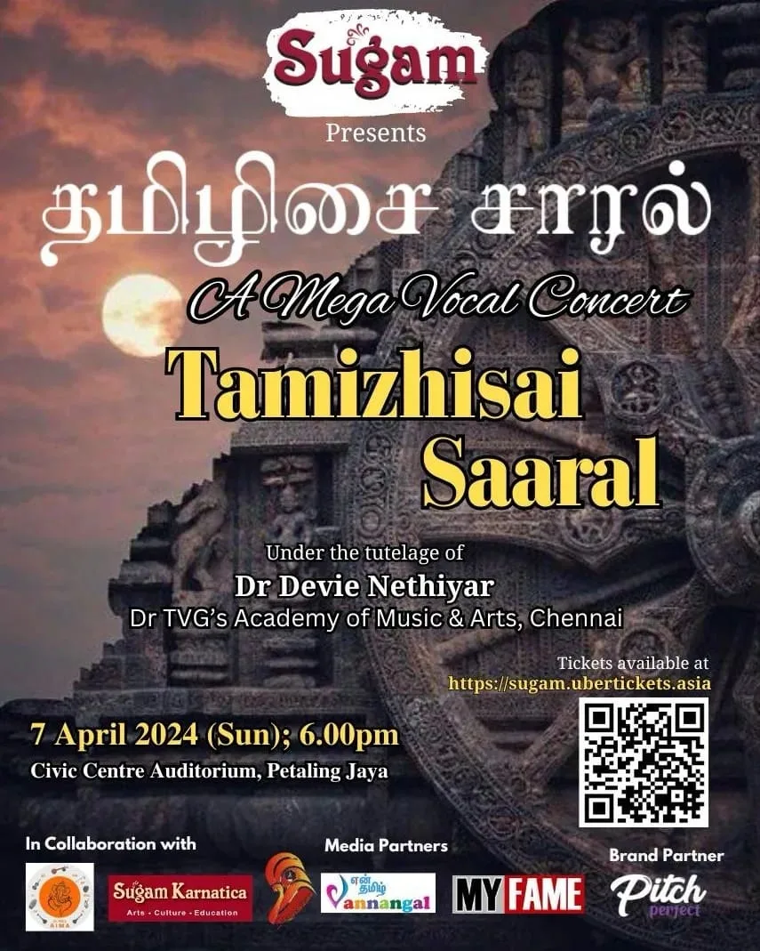 The vibrant and rich tapestry of Tamizh, one of the world’s oldest languages, will come to life in a spectacular thematic musical concert titled “Tamizhisai Saaral.” This enchanting event is set to take place on the 7th of April 2024, at the Civic Centre Petaling Jaya. Presented by the Sugam Culture & Heritage Foundation, “Tamizhisai Saaral” assures a distinctive and memorable experience. It will spotlight the creations of renowned composers, celebrating the essence and allure of Tamizh across various musical genres.