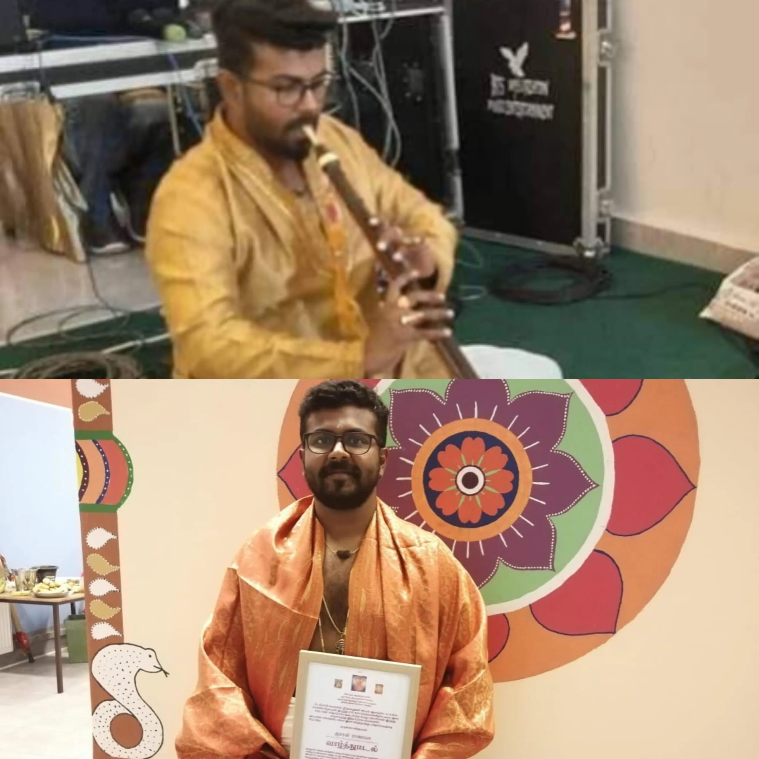“One of my most memorable experiences was performing at “Yesudass Golden Nite” in 2016 alongside Dr.K.J. Yesudass and playback singer Alka Ajith at the Royal Festival Hall in the United Kingdom,” he mentioned in the interview.His Nadhaswaram performances in Denmark left audiences in awe, as he effortlessly blended tradition with innovation, breathing new life into ancient melodies.Collaborating with local musicians, he infused traditional Tamil melodies with the diverse musical traditions of each country, creating a harmonious fusion that resonated with audiences and celebrated cultural diversity.