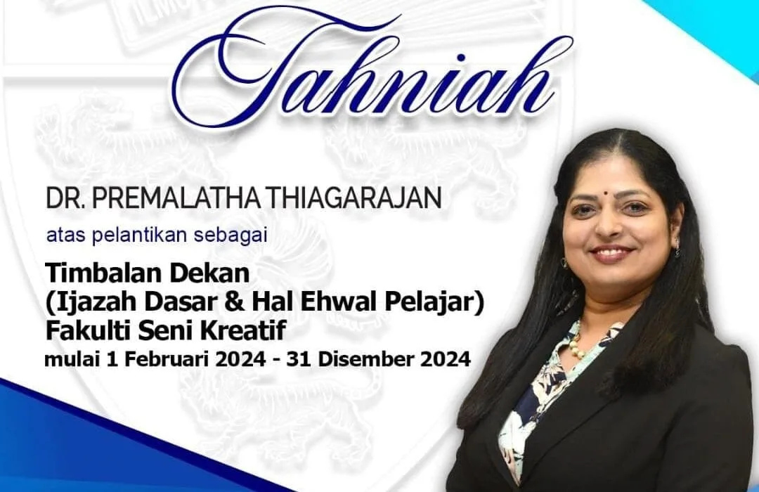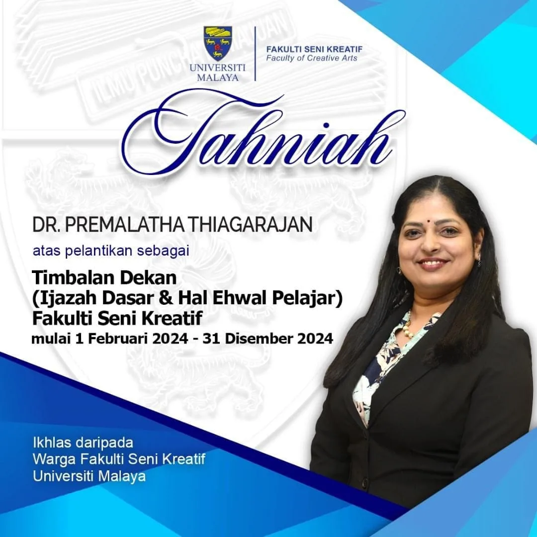 Dr. Premalatha Thiagarajan holds the esteemed position of Deputy Dean of Undergraduate Studies at the Faculty of Creative Arts, Universiti Malaya, a prestigious public university in Malaysia. As an Indian lecturer, her ascent to this prominent role stands as a testament to her remarkable contributions and unwavering dedication. Dr. Premalatha’s journey to Deputy Dean has been paved with diligence and excellence in academia.