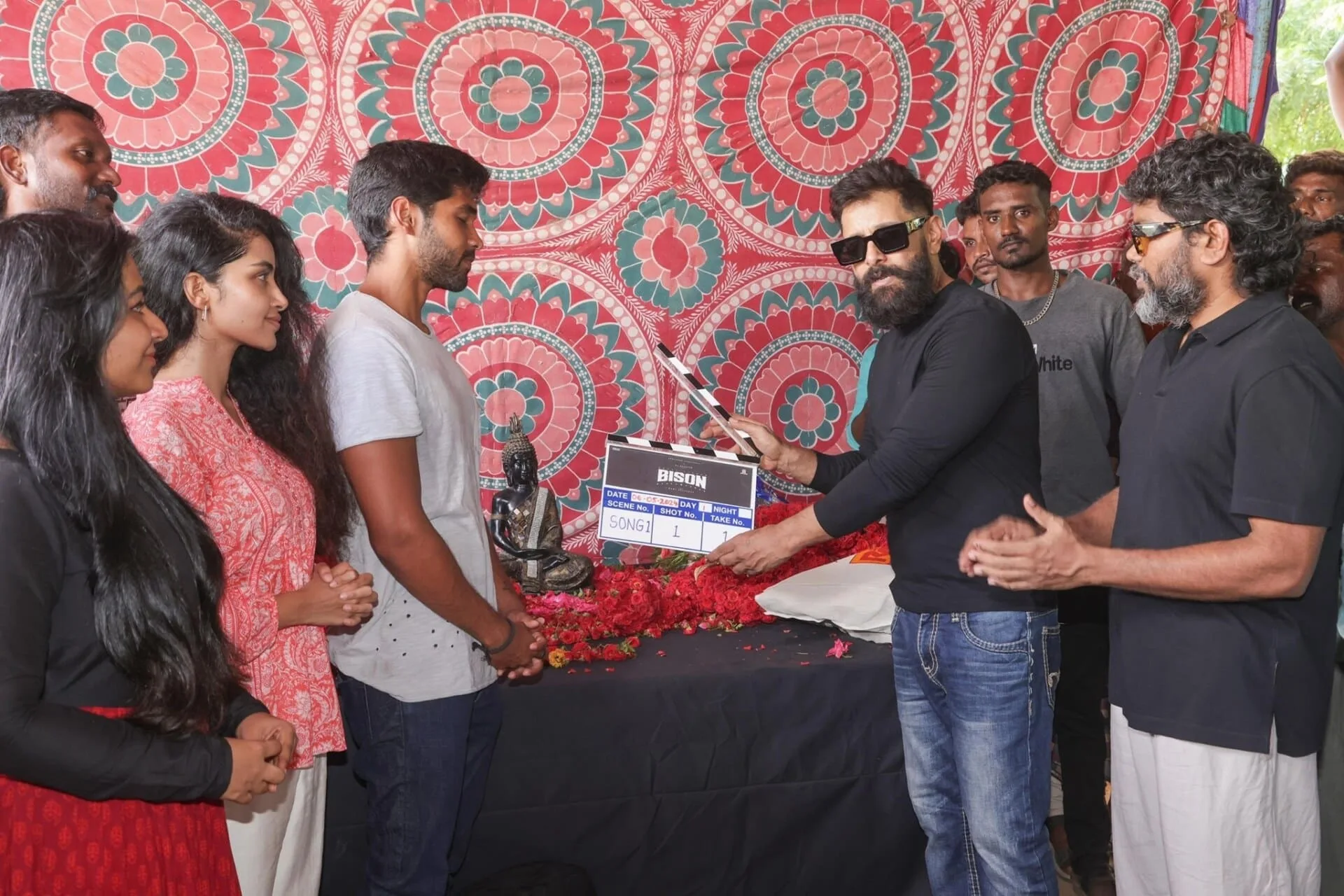 The commencement of shooting for “Bison” was marked by a traditional pooja ceremony, attended by the industry’s luminaries. Chiyaan Vikram, a stalwart of Indian cinema and Dhruv’s father, graced the occasion, adding a touch of familial pride and support.