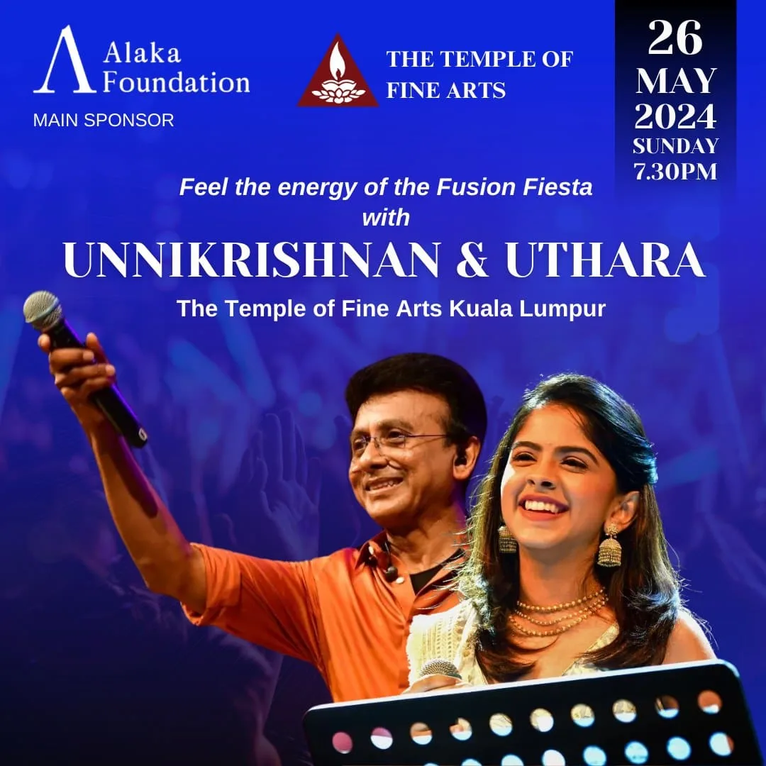 On the 26th of May 2024 at 7.30pm, Unnikrishnan and Uthara are set to dazzle audiences once again with their much-anticipated “Fusion Fiesta.” This vibrant event promises to be a celebration of fusion music like no other, combining the rich traditions of Carnatic music with contemporary elements to create a dynamic and exhilarating experience. Adding to the excitement, the performance will feature Malaysian dancers from The Temple of Fine Arts and musicians from India, coming together to infuse the event with a spirit of cultural diversity and artistic collaboration. Their presence will undoubtedly elevate the festivities, making the evening even more merry and grand.