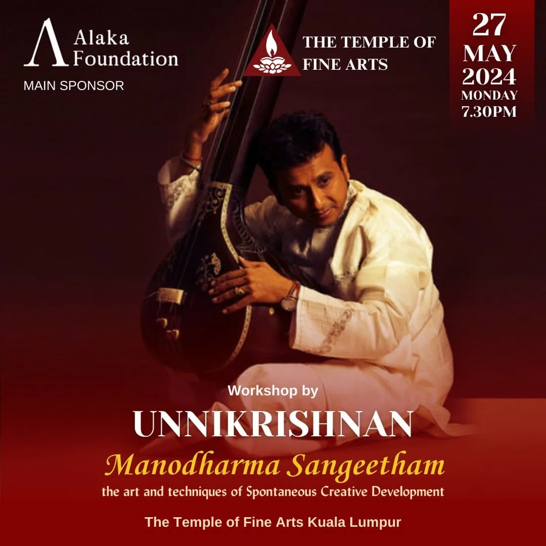 In addition to delivering memorable musical performances, Unnikrishnan is poised to impart his wisdom to Malaysian music enthusiasts through a workshop titled “Manodharma Sangeetham,” scheduled for the 27th of May 2024 at 7.30pm. In this enlightening session, Unnikrishnan will share his vast knowledge, providing practical tips and techniques for mastering Manodharma singing. Participants can anticipate learning the intricacies of spontaneous musical expression and discovering new ways to enhance their vocal abilities.