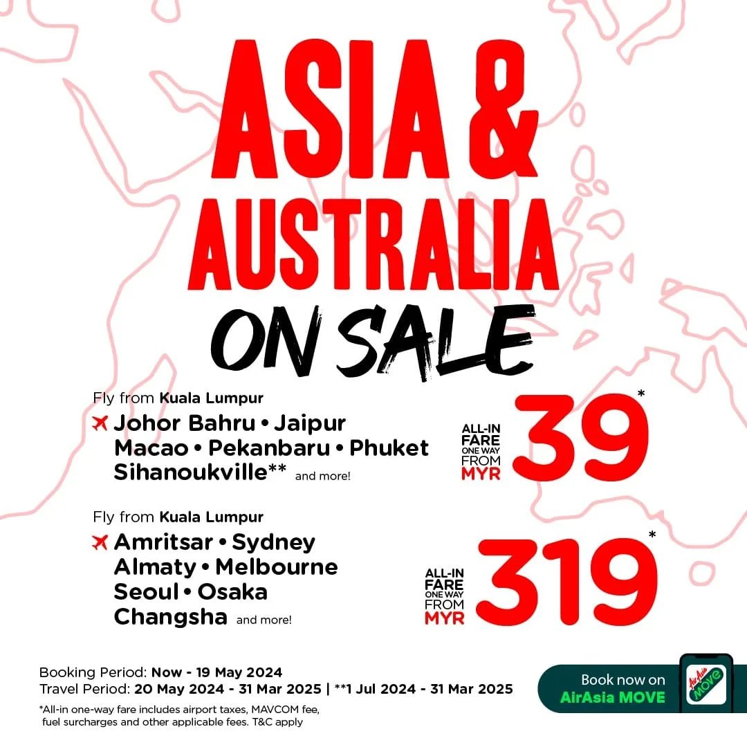 With its hallmark dedication to affordability, AirAsia once again sets the stage for unparalleled travel experiences, ensuring that exploration knows no bounds. Embrace the spirit of adventure, seize the moment, and embark on your next escapade with AirAsia’s extraordinary promotional fares, starting from just RM39*. Experience the world as it’s meant to be—accessible, vibrant, and waiting to be explored.