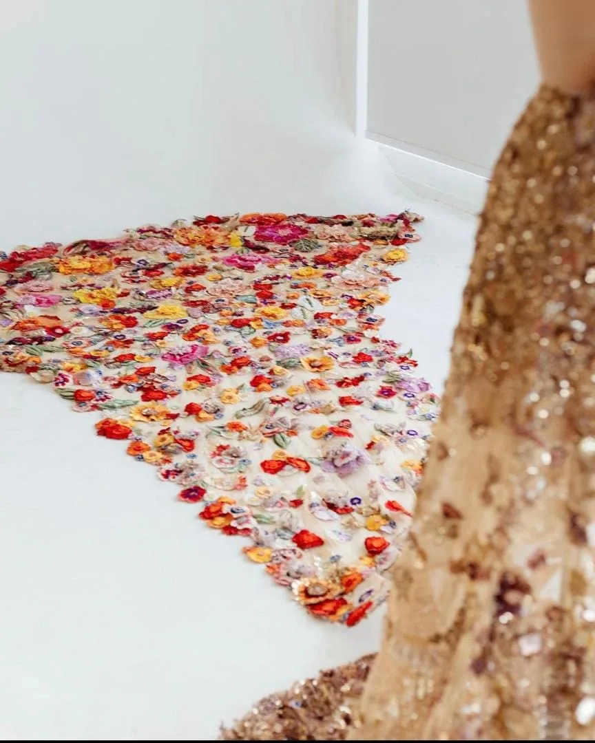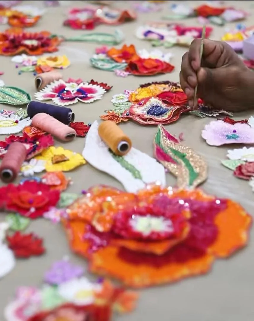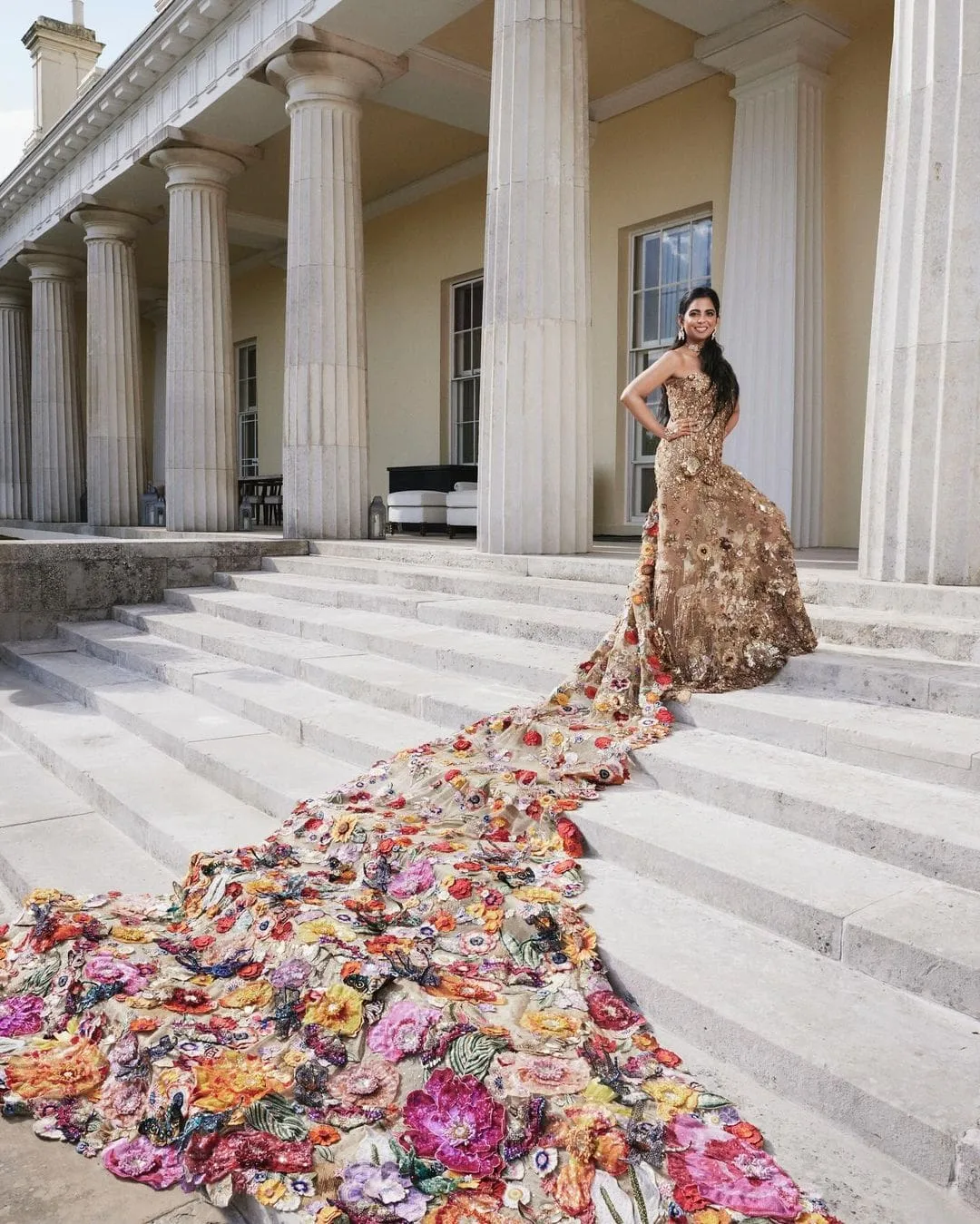 Anaita underlined the gown’s message of rebirth and support for local artisans, citing its production in Indian villages, which employed hundreds of artists. Rahul Mishra, the designer, said in a news release that creating this outfit for Ambani was an honor because of her prominence in the world of fashion and her deep ties to her Indian roots. The clothing depicts the progression of a diverse flower garden through each stage of its life cycles sprouting, blooming, and eventually decaying.